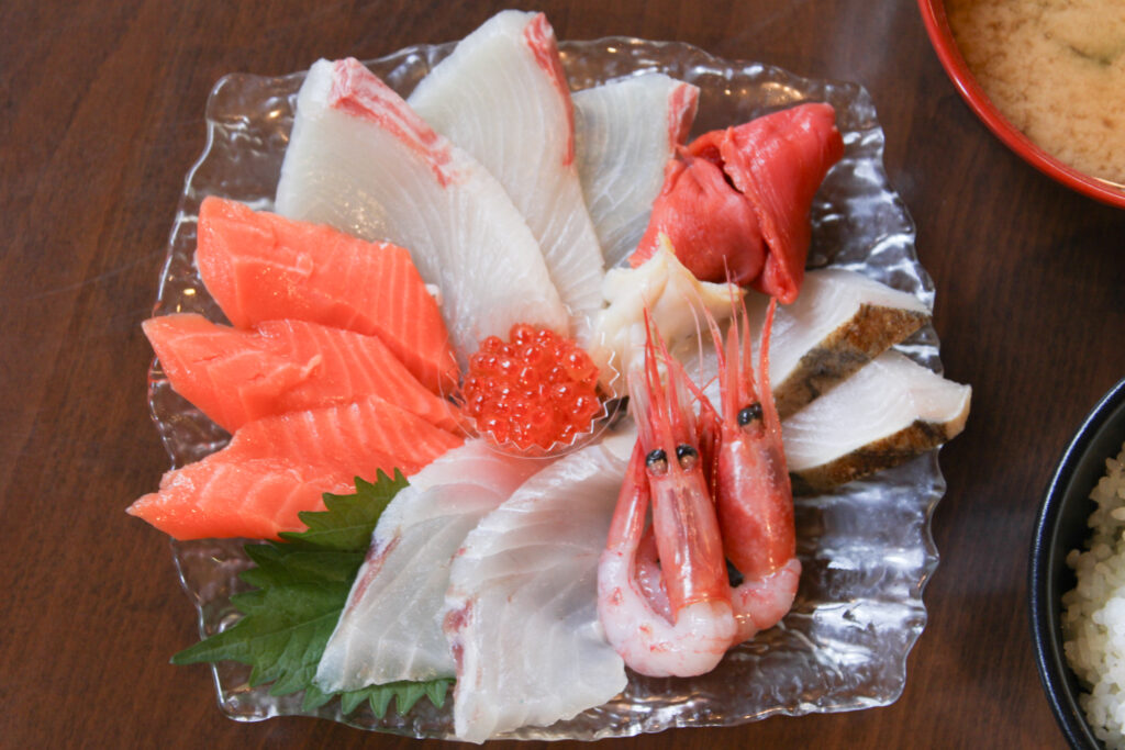 分厚く切られた刺身と鮮度の高さが際立つ逸品で、魚の旨みがダイレクトに味わえます。刺身をご飯にのせて海鮮丼スタイルで味わうのもおすすめです。