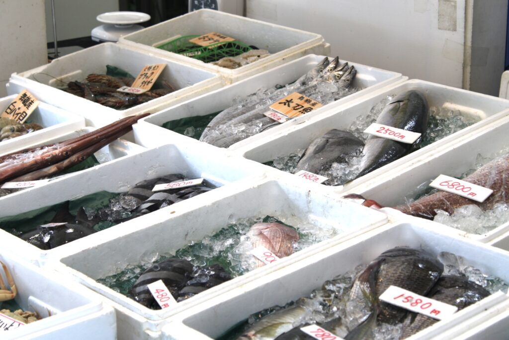店頭で購入した魚は、全国配送にも対応しています。持ち帰りの場合は、手さげ袋に入れてもらうか、保冷ボックスの購入も可能です。