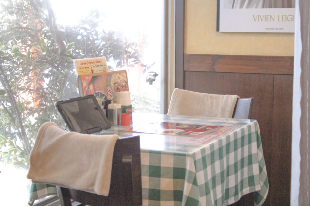 可愛らしいチェック柄のテーブルクロスが印象的で、肩の力がふっと抜けるような雰囲気。